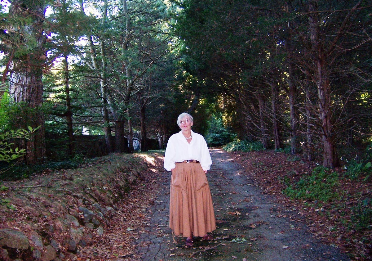 the dresses, of course, in between planting a perennial border, complete with stone paths, 130 feet long,